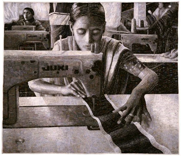 Terese Agnew, Portrait of a Textile Worker , Clothing labels, thread, fabric backing, 240 x 278.8 centimeters, 2005, Museum of Arts and Design, New York